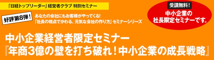 年商3億の壁を打ち破れ! 【主催】「日経トップリーダー」経営者クラブ