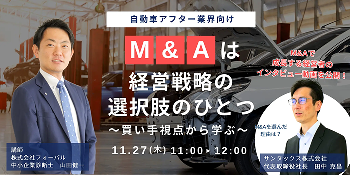 - 自動車アフターマーケット向け│M&Aは経営戦略の選択肢のひとつ 〜買い手視点から学ぶ〜