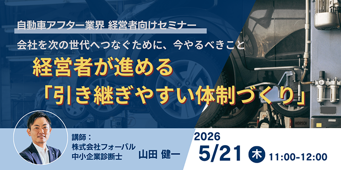 - 自動車アフター業界向け│会社を次の世代へつなぐために、今やるべきこと〜経営者が進める「引き継ぎやすい体制づくり」〜