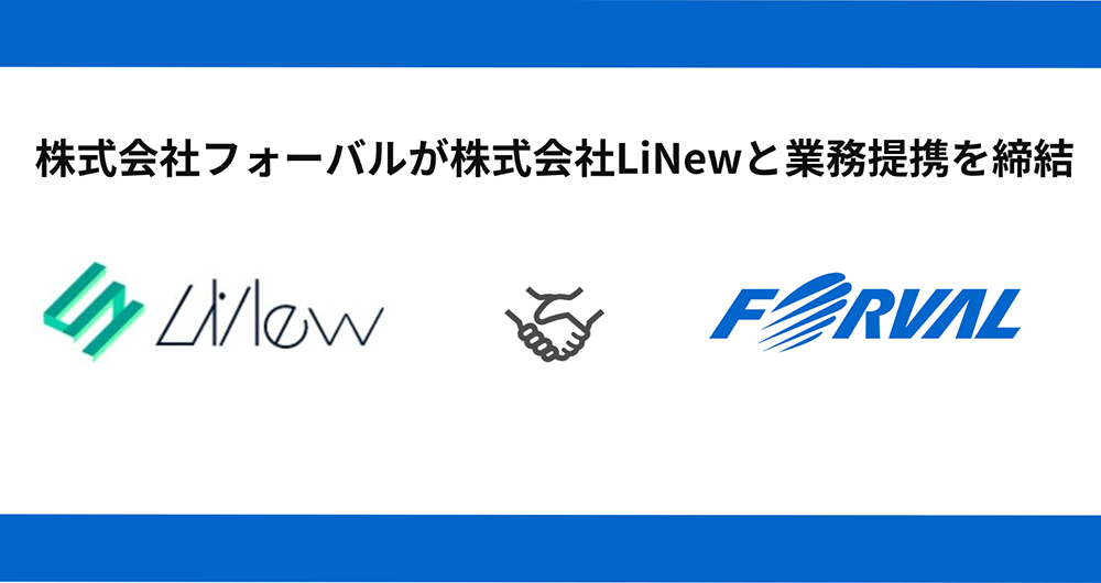 株式会社フォーバルは、株式会社LiNew(本社:東京都渋谷区、代表取締役:西本弘昌、以下「LiNew」)と業務提携を締結しましたことをお知らせいたします。